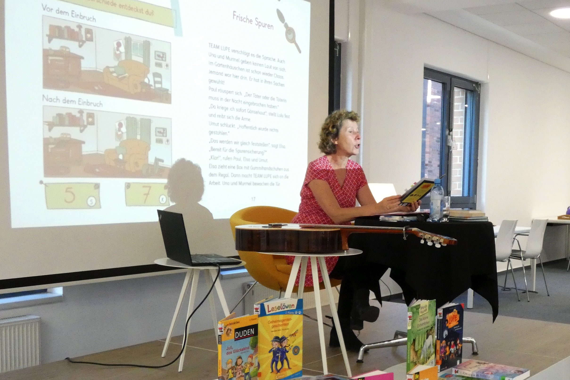 Im Rahmen der von der Stadtbücherei Dülmen und der Bürgerstiftung Dülmen gemeinsam durchgeführten Autorenlesungen fanden am 21. September 2 Veranstaltungen mit der Kinderbuchautorin Henriette Wich statt. Für jeweils 40 bis 60 Schülerinnen und Schüler aus Dülmener Grundschulklassen der Jahrgangsstufen 3 und 4 las sie amüsante und spannende Geschichten aus ihren Werken. So berichtete sie auch von zahlreichen Begegnungen und Situationen, bei denen sie Ideen und Material für ihre Bücher suchte und recherchierte.