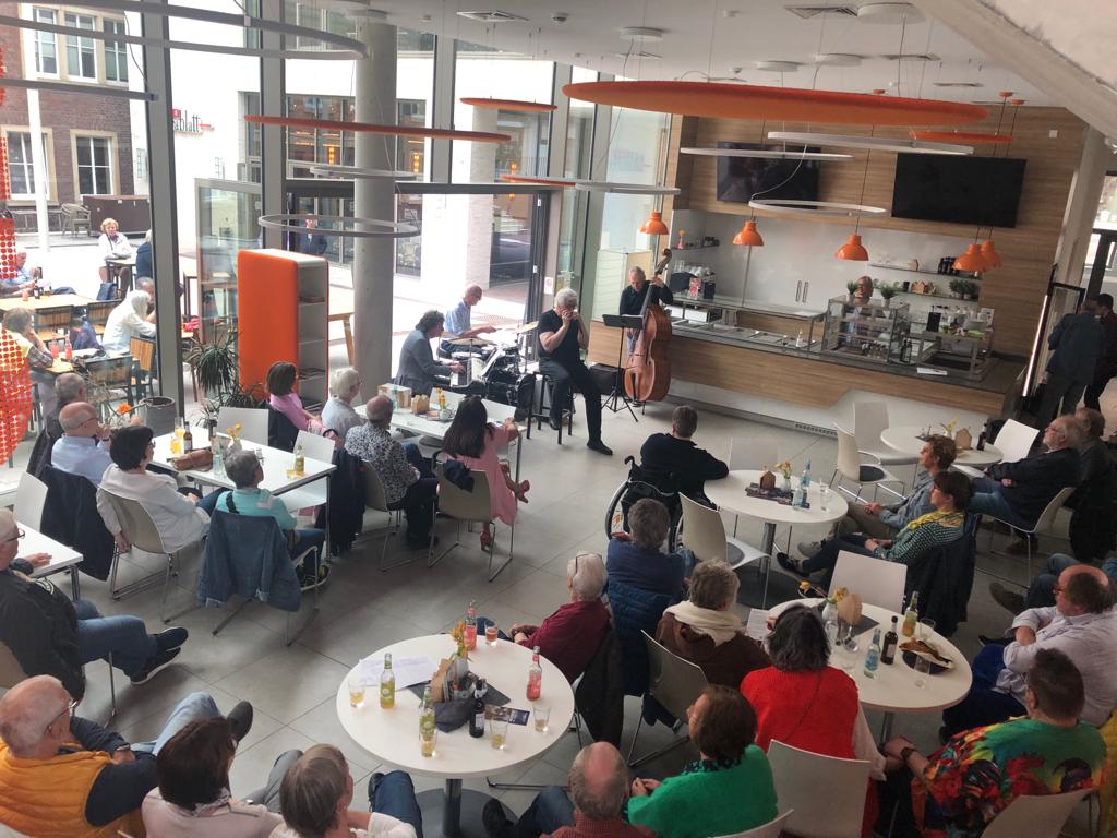 Am Sonntag, den 7. Mai ging es nun endlich weiter mit der beliebten Jazznight-Reihe. Einiges war neu und anders als bisher: So fand die Jazznight erstmals nicht im DJK-Clubheim, sondern im Bistro orange des EinsA statt. Und auch organisatorisch hat sich einiges verändert. Veranstalter der beliebten Jazzreihe ist nun die Bürgerstiftung Dülmen gemeinsam mit dem Förderverein für Kunst und Kultur, unterstützt werden die Veranstaltungen durch das einsA und das Kulturbüro der Stadt Dülmen. Was sich hingegen nicht verändert hat, ist die musikalische Leitung und vor allem die Qualität der Musik: Jochen Welle ist nicht nur für die Auswahl der international bekannten Musikerinnen und Musiker verantwortlich, sondern sitzt auch selbst am Schlagzeug. Ergänzt wurde er bei der gut besuchten Auftaktveranstaltung durch Hendrik Meurkens an der Harmonika, Walfried Böcker am Kontrabass und Thomas Hufschmidt am E-Piano.