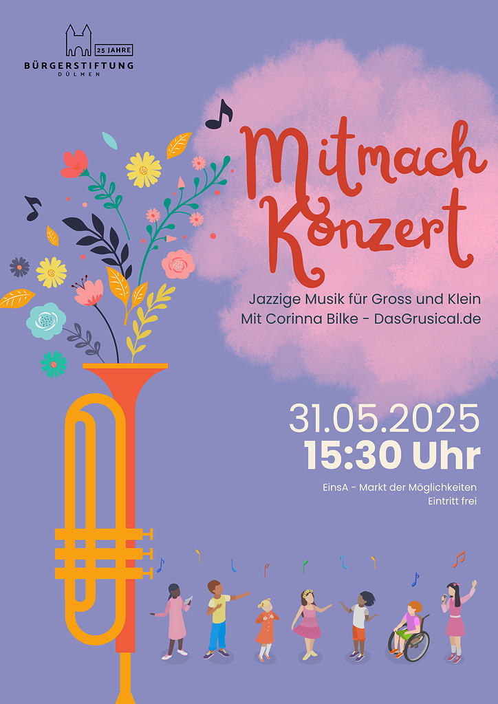 #BürgerstiftungDülmen #KinderJazzKonzert #MusikFürKinder #FamilienEvent #DülmenSwingt #MitmachenErwünscht #CorinnaBilke