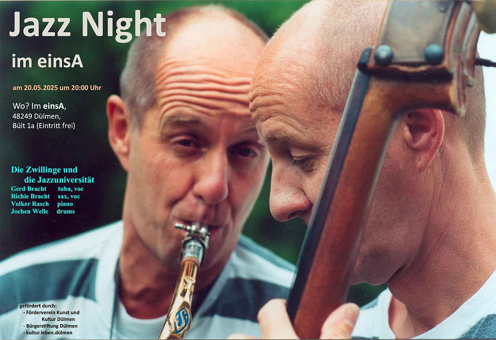 Am 31. Mai 2025 ab 15:30 Uhr gibt es jazzige Musik für groß und klein im einsA - der Eintritt ist frei!