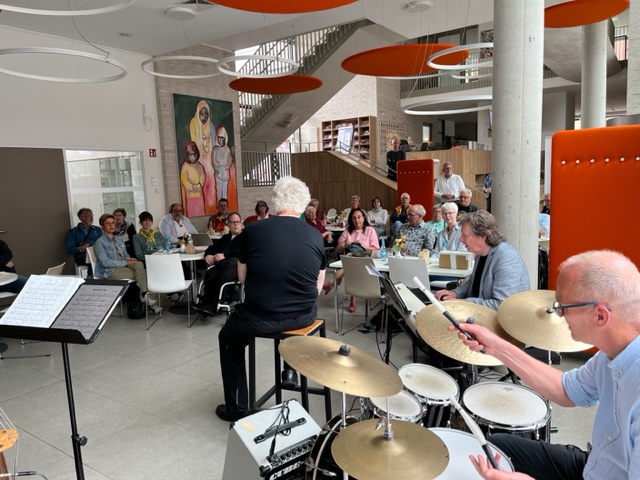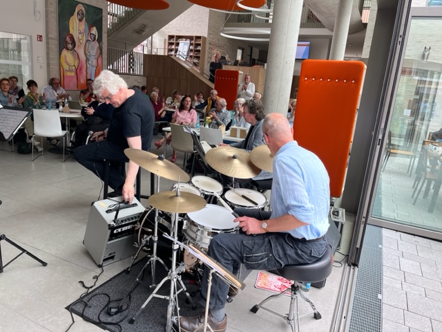 Am Sonntag, den 7. Mai ging es nun endlich weiter mit der beliebten Jazznight-Reihe. Einiges war neu und anders als bisher: So fand die Jazznight erstmals nicht im DJK-Clubheim, sondern im Bistro orange des EinsA statt. Und auch organisatorisch hat sich einiges verändert. Veranstalter der beliebten Jazzreihe ist nun die Bürgerstiftung Dülmen gemeinsam mit dem Förderverein für Kunst und Kultur, unterstützt werden die Veranstaltungen durch das einsA und das Kulturbüro der Stadt Dülmen. Was sich hingegen nicht verändert hat, ist die musikalische Leitung und vor allem die Qualität der Musik: Jochen Welle ist nicht nur für die Auswahl der international bekannten Musikerinnen und Musiker verantwortlich, sondern sitzt auch selbst am Schlagzeug. Ergänzt wurde er bei der gut besuchten Auftaktveranstaltung durch Hendrik Meurkens an der Harmonika, Walfried Böcker am Kontrabass und Thomas Hufschmidt am E-Piano.
